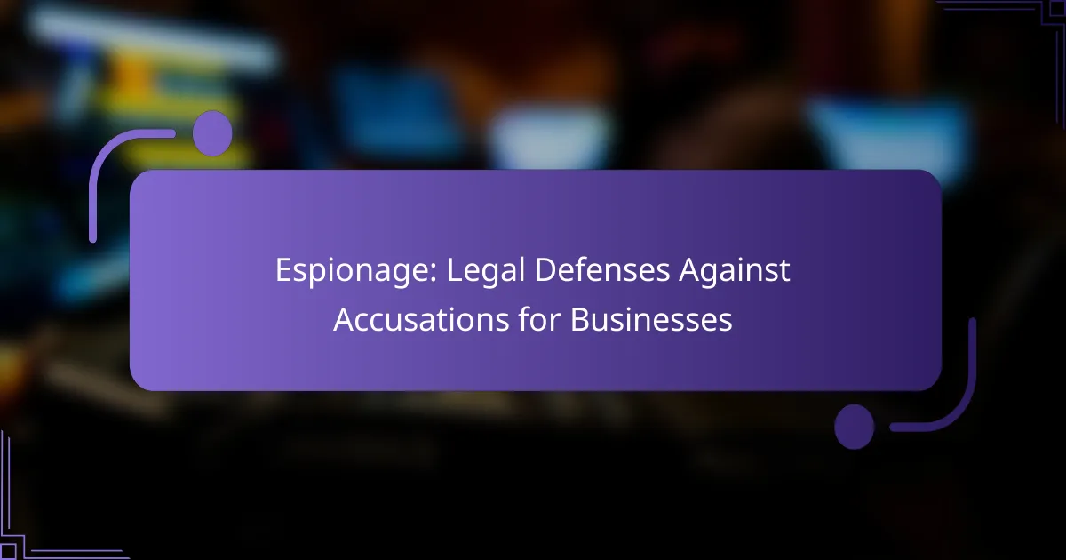In the United States, businesses facing espionage accusations have several legal defenses at their disposal, including affirmative defenses and constitutional protections. By implementing strong compliance programs and training employees on security protocols, organizations can better prepare for potential allegations. Legal counsel is essential in these cases, offering guidance on rights and strategies to effectively navigate the complexities of espionage charges.