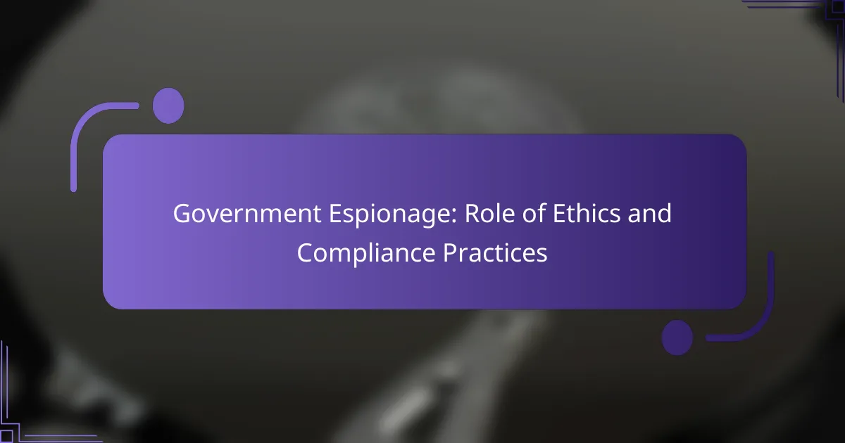 Compliance practices play a crucial role in government espionage by establishing ethical standards and legal frameworks that guide intelligence operations. These practices ensure that espionage activities align with national laws and international norms, thereby promoting accountability and minimizing abuses of power.